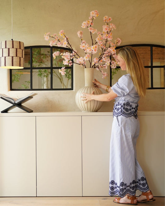 Breng de poëzie van de lente in huis met onze collectie kunstbloesems. De sierlijke bloesembomen, met hun volle takken en subtiel gekleurde bloemetjes, geven elke ruimte een licht en luchtig gevoel. Ddeaal in een minimalistisch interieur, Japandi-stijl of als rustpunt in een eclectisch geheel. De bloesems ogen levensecht en blijven eindeloos mooi.