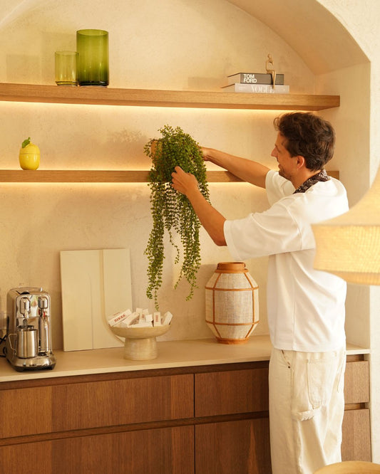 Onze collectie kunst hangplanten combineert moeiteloos speelse vormen met een stijlvolle, natuurlijke uitstraling. Perfect om sfeer toe te voegen aan een open plank, hoge kast of een lege hoek aan het plafond. Een eenvoudige manier om hoogte en diepte te brengen in je interieur, zónder gedoe met water geven of zonlicht.