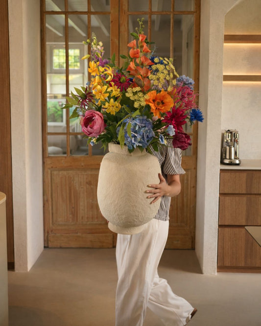 Iedere dag verliefd op je huis met een prachtige handgebonden boeket van kunstbloemen! Een boeket kunstbloemen voelt vers, blijft voor altijd. Het perfecte cadeau voor jezelf of een geliefde.