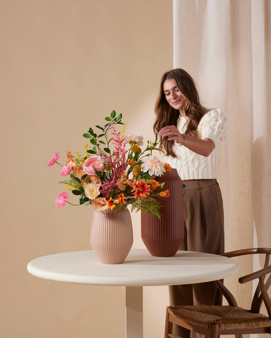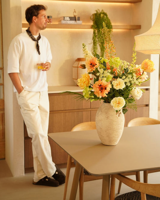 Iedere dag verliefd op je huis met een prachtige handgebonden boeket van kunstbloemen! Een boeket kunstbloemen voelt vers, blijft voor altijd. Het perfecte cadeau voor jezelf of een geliefde.