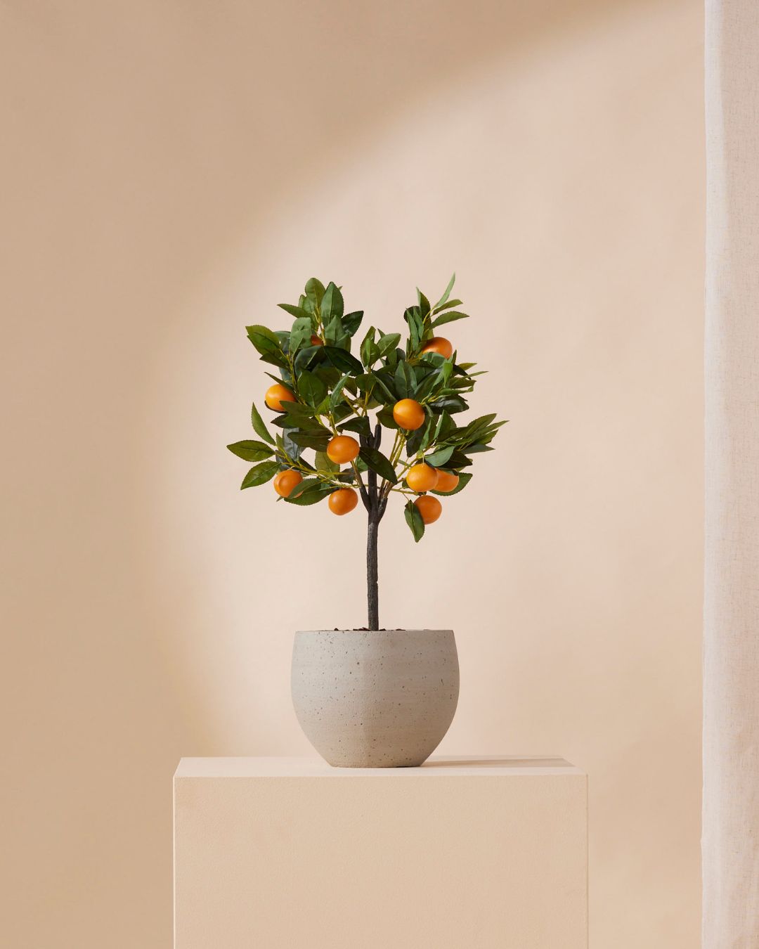 Het prachtige sinaasappelboompje dankt haar kleuren aan de levensechte dieporanje siervruchten. Met een hoogte van 72 cm is dit kunstboompje enorm geschikt als decoratie op een aanrechtblad of kookeiland. Kunstplanten- en bomen zijn onderhoudsvrij, altijd mooi van kleur en zorgen voor eindeloos plezier.